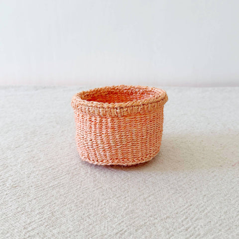 This sisal, woven basket is handmade by a weaving cooperative in southeastern Kenya. The women hand-dye the sisal fibers and weave them into these beautiful works of art. Use this basket as a planter, for storage, or to liven up a shelf!
